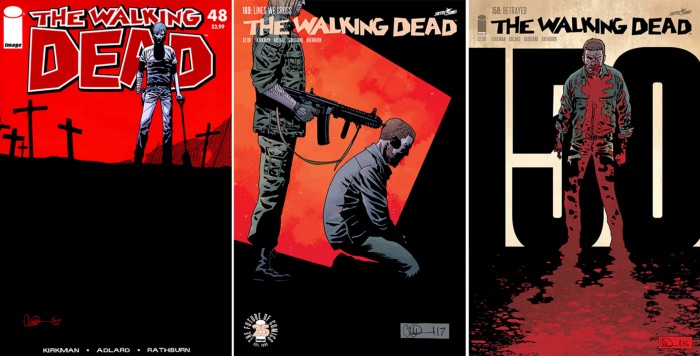 So, how do you take the old “blood overlay” death screen and make it look more like a graphic comic book cover? To start, we looked at the new graphic technologies our art and environment teams were using to make The Walking Dead look like a comic book to see if we could utilize the same tech. The two most exciting new tech features were “Graphic Black” — which sounds like a cool metal band — and the “Gradient Property.”